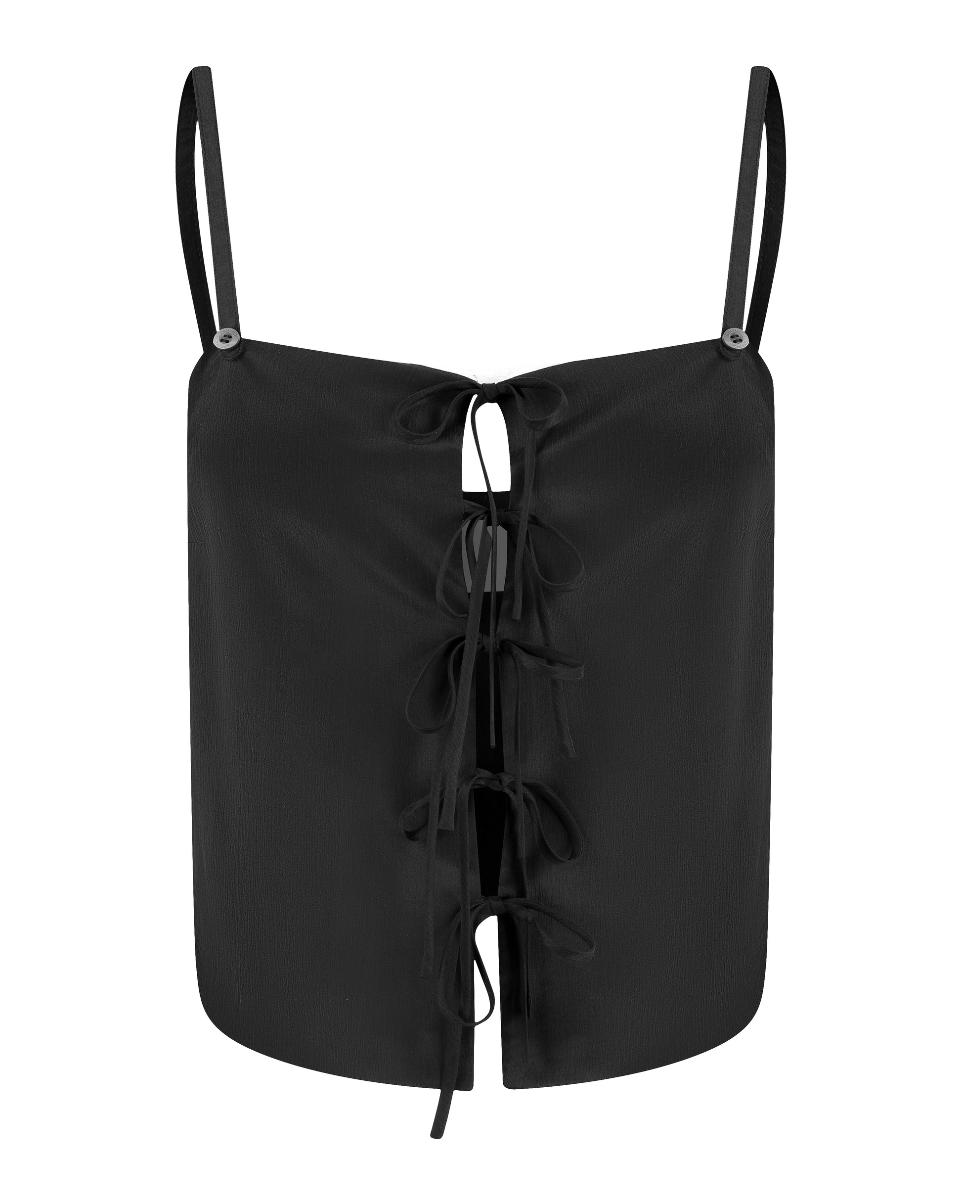 blusa em seda leve, que fecha por amarrações através de lacinhos. alças em martingales estruturados e detalhes em botões.